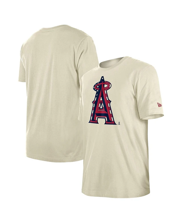 New Era Men's Cream Los Angeles Angels 4th of July Flag Fill T-Shirt