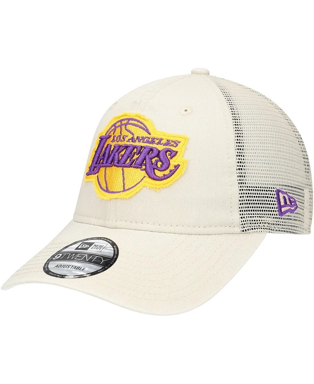 New Era Men's Cream Los Angeles Lakers Rough Edge Logo Trucker 9TWENTY Adjustable Hat