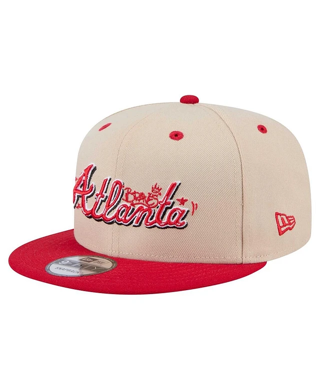 New Era Men's Cream/Red Atlanta Braves Team Art 9FIFTY Snapback Hat