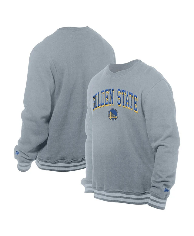 New Era Men's Gray Golden State Warriors Chenille Cross Over Pullover Sweatshirt