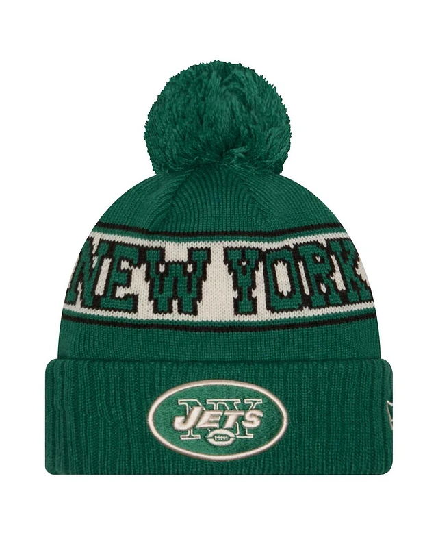 New Era Men's Kelly Green New York Jets Retro Cuffed Knit Hat with Pom
