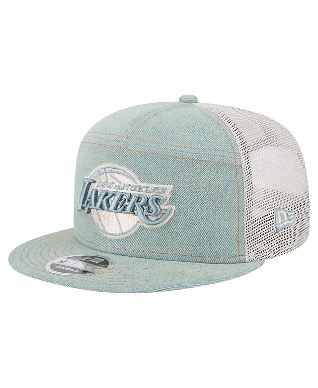 New Era Men's Los Angeles Lakers Adventure Denim Split Panel 9FIFTY Snapback Trucker Hat