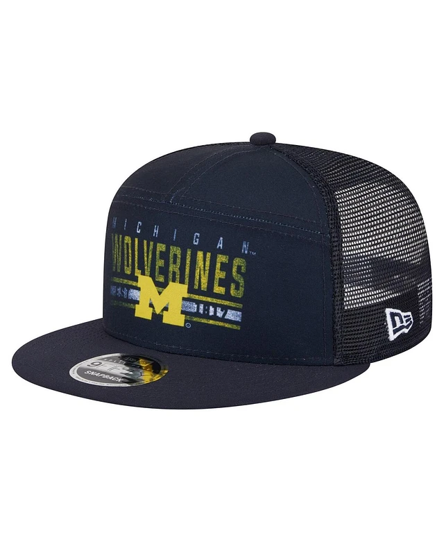 New Era Men's Navy Michigan Wolverines Split Panel 9FIFTY Snapback Trucker Hat
