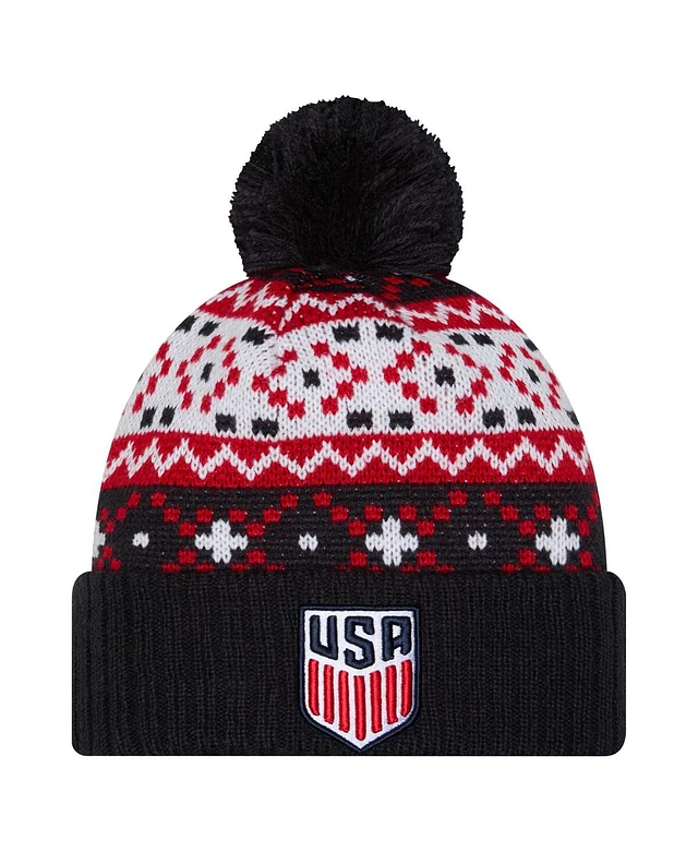 New Era Men's Navy Usmnt Nostalgia Cuffed Knit Hat with Pom