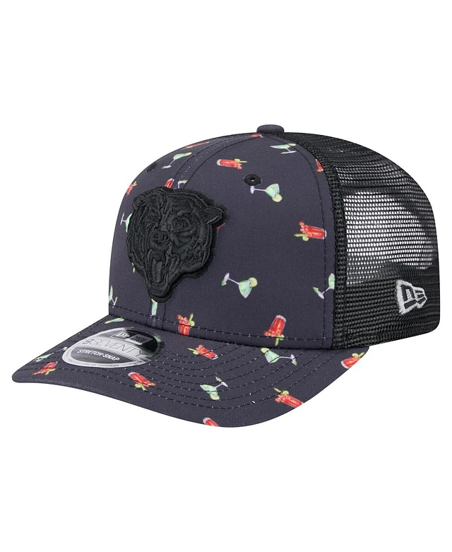 New Era Men's Navy/Black Chicago Bears Adventure Drinks Pattern 9SEVENTY Stretch-Snap Hat