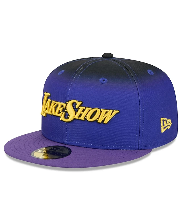 New Era Men's Purple Los Angeles Lakers Sport Night Script Sided 59FIFTY Fitted Hat