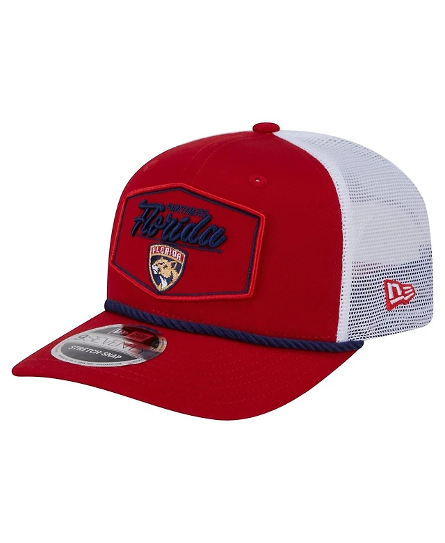New Era Men's Red/White Florida Panthers Team Patch Basic 9SEVENTY Adjustable Trucker Hat