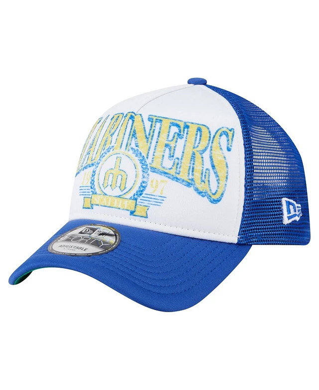 New Era Men's Royal Seattle Mariners Distressed 9FORTY A-Frame Adjustable Trucker Hat