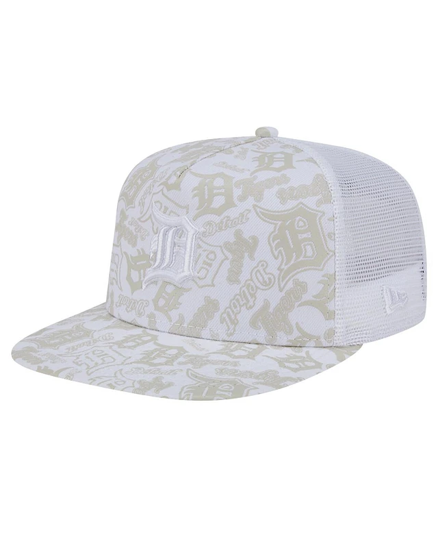 New Era Men's White Detroit Tigers Logo Dunes A-Frame Trucker 9FIFTY Snapback Hat