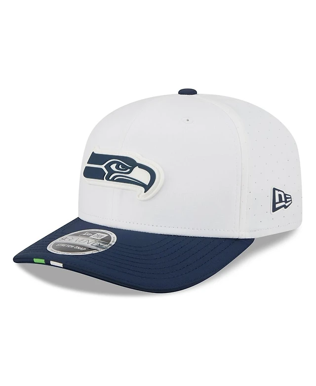 New Era Men's White/College Navy Seattle Seahawks 2025 Nfl Training Camp 9SEVENTY Adjustable Hat