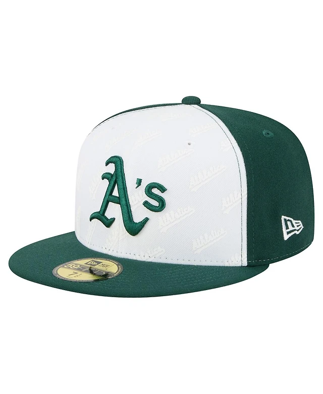 New Era Men's White/Green Athletics Repeat 59FIFTY Fitted Hat
