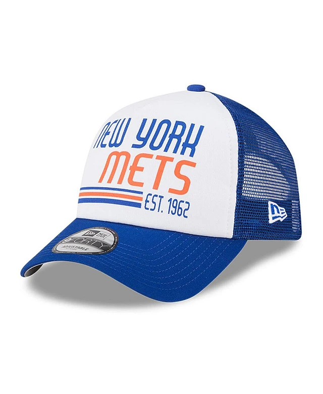 New Era Men's White/Royal New York Mets Stacked A-Frame Trucker 9FORTY Adjustable Hat