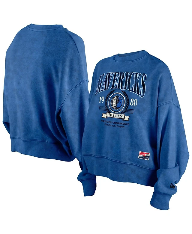 New Era Women's Blue Dallas Mavericks Hardwood Classics Enzyme Wash Oversized Boxy Pullover Sweatshirt