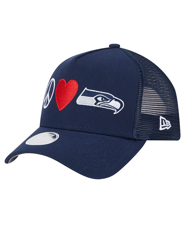 New Era Women's College Navy Seattle Seahawks Peace Love Trucker 9FORTY Adjustable Hat