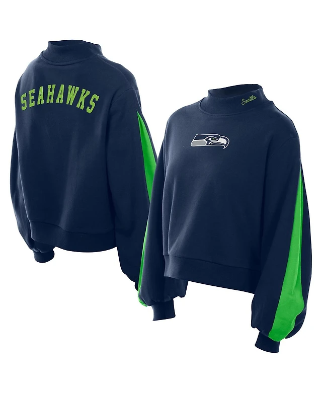 New Era Women's College Navy Seattle Seahawks Sport Night Mock Neck Balloon Sleeve Pullover Sweatshirt