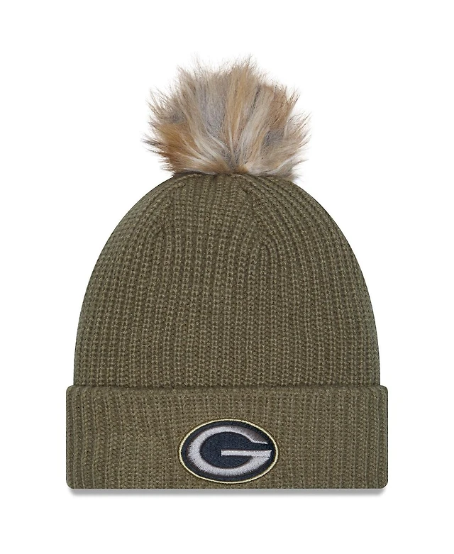 New Era Women's Dark Green Green Bay Packers 2025 Salute to Service Cuffed Knit with Pom Hat