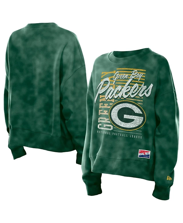 New Era Women's Green Green Bay Packers Oversized Throwback Mineral Wash Crew Neck Sweatshirt