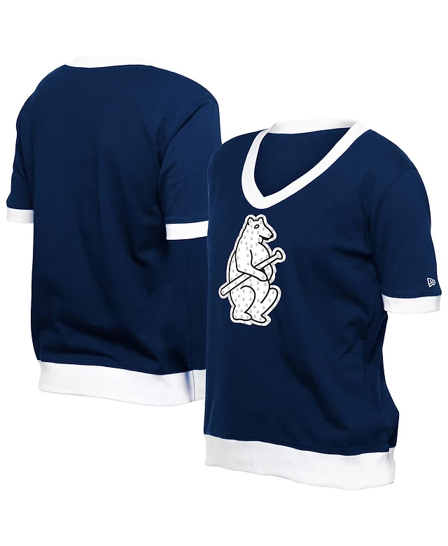 New Era Women's Navy Chicago Cubs Game Day Rhinestone V-Neck T-Shirt