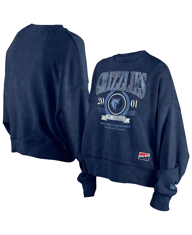New Era Women's Navy Memphis Grizzlies Hardwood Classics Enzyme Wash Oversized Boxy Pullover Sweatshirt