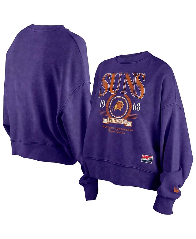 New Era Women's Purple Phoenix Suns Hardwood Classics Enzyme Wash Oversized Boxy Pullover Sweatshirt