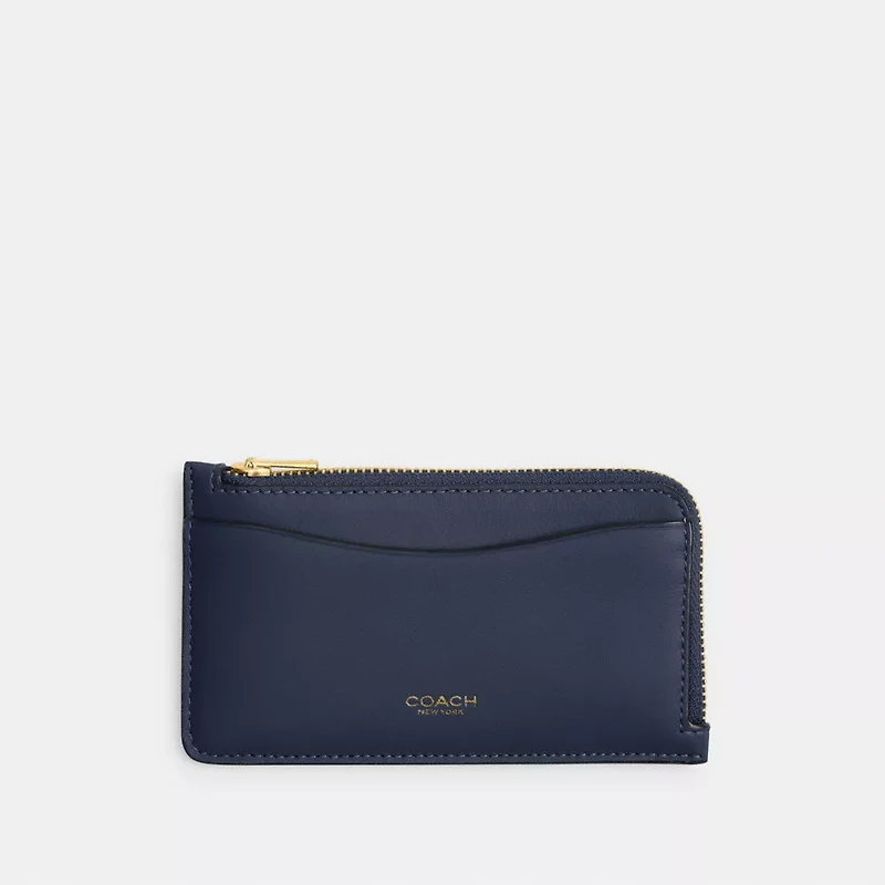 This compact refined leather card case is designed with a rounded edge to fit comfortably in front pant pockets. The slim style has five card slots, a slip pocket and an expandable zip compartment for coins, cash or receipts.