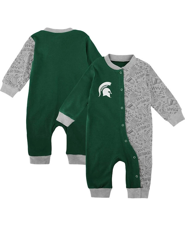 Newborn and Infant Boys Girls Colosseum Green Michigan State Spartans Bumpo Football Logo Romper