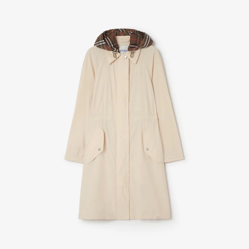 The Newbury parka comes in a lightweight stretch nylon twill, with a detachable Burberry Check hood for unpredictable British weather. The silhouette is cut to a relaxed fit with a concealed closure and raglan sleeves for a softly curved shoulder. A subtle Equestrian Knight Design is printed on the chest. Zip and press-stud closure Detachable drawcord hood Side press-stud flap pockets Drawcord waist Press-stud cuffs Printed Equestrian Knight Design at chest Comes with a garment bag