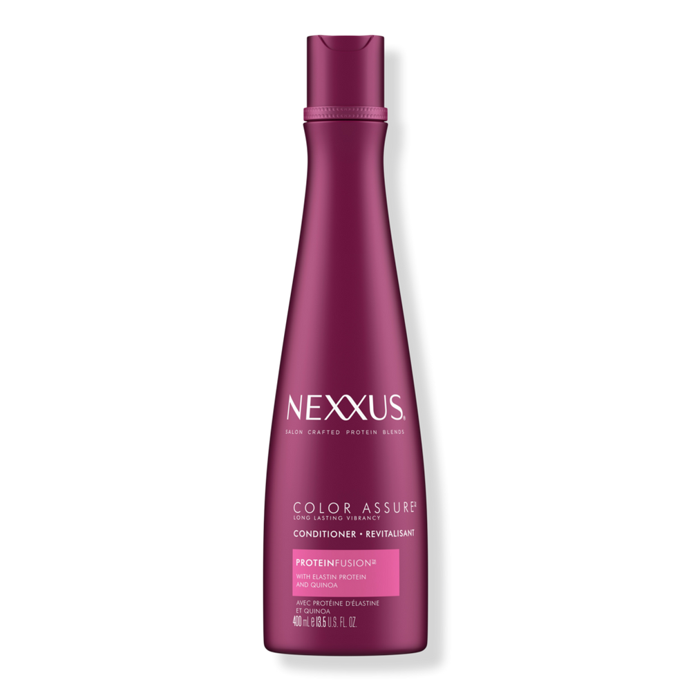 COLOR ASSURE CONDITIONER 13.5OZ. Benefits: COLOR SAFE CONDITIONER FOR COLORED HAIR: Nexxus Color Assure Conditioner for color-treated hair helps moisturize and enhance the vibrancy of colored hair.. QUALITY INGREDIENTS FOR COLORED TREATED HAIR: infused with an exclusive ProteinFusion blend with Elastin Protein and Quinoa, this color protecting conditioner helps to enhance color.. PROVEN RESULTS FOR COLORED HAIR: the Nexxus Color Assure hair conditioner creates an invisible defensive layer to protect essential proteins within the hair fiber.. COLOR CONDITIONER FOR STRONG COLOR VIBRANCY: this deep conditioner for color-treated hair helps hair look smooth and soft, while maintaining color.. SALON-QUALITY COLOR PROTECTING CONDITIONER: Nexxus hair products were born in salons and perfected by science, using high-performing technology and precious ingredients.. NEXXUS COLOR ASSURE COLLECTION: For best results, use the Nexxus Hair Color Assure Conditioner For Colored Treated Hair with ProteinFusion, Color Conditioner with the Color Assure Shampoo.. : :