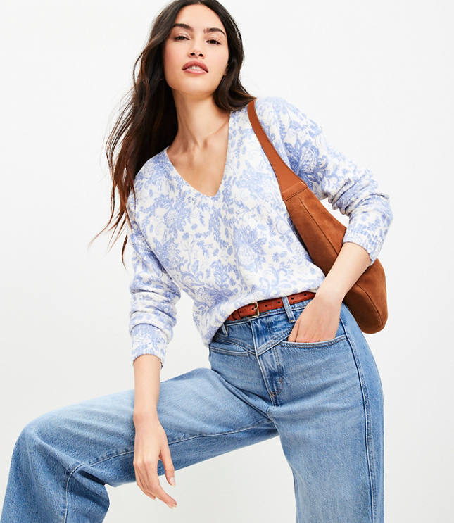 A hint of slouch shapes this flattering and polished cotton blend knit with a covetable hint of modern attitude. V - neck. Long sleeves, Bullet1: 23"long, Imported:, Fit: Relaxed an easy shape that's just shy of loose, Length: Abbreviated - hits at natural waist, Fabrication: 55% Cotton 28 Nylon 17 Polyester, Garment Care: Machine Washable Loft Night Bloom Relaxed V - Neck Sweater Size Medium Whisper White Women's by Loft Size Regular - M Whisper White Women's Cotton, Blend V - Neck, Long Sleeve Pullover Sweaters Wear To Work 55% Cotton 28% Nylon 17% Polyester Machine Washable Best Fall Sweaters