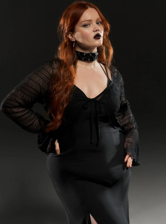 Front Tie 3/4 Sleeve Cold Shoulder Top