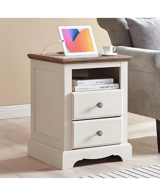 Nightstand 18 Inch with Charging Station,Usb Ports,Antique White