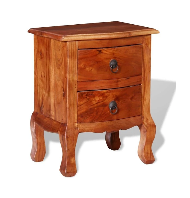 Nightstand Brown Solid Acacia Wood Nightstand Rectangular