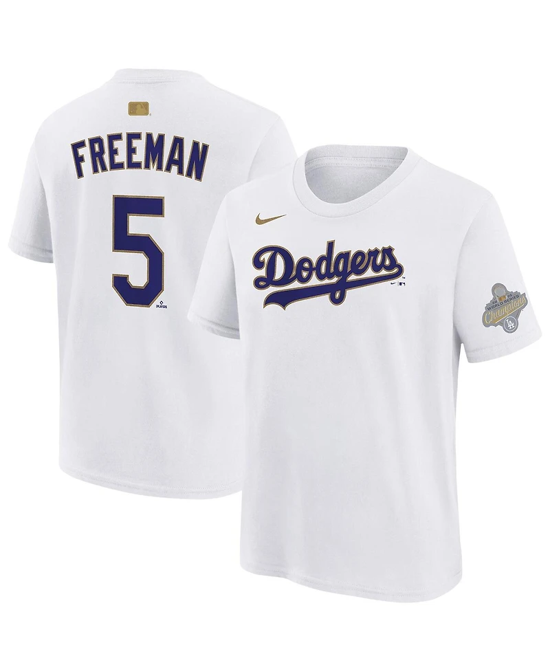 Nike Big Boys and Girls Freddie Freeman White Los Angeles Dodgers 2026 Gold Collection Name Number T-Shirt