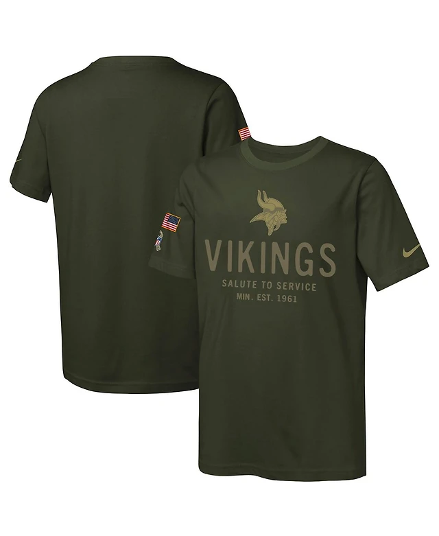 Nike Big Boys and Girls Olive Minnesota Vikings 2025 Salute to Service Sideline Dri-fit T-Shirt