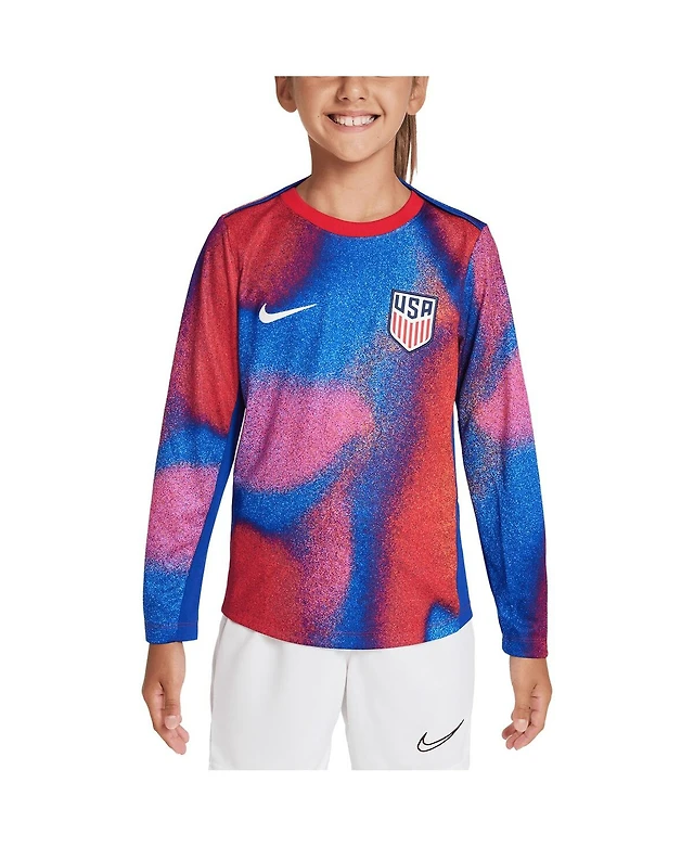 Nike Big Boys and Girls Red/Blue Usmnt 2024 Academy Pro Pre-Match Long Sleeve Top