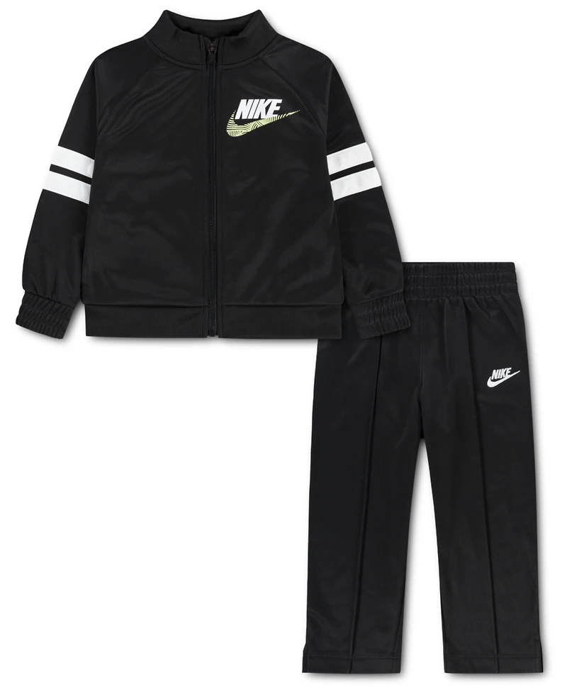 Outfit him in a head-to-toe athletic style with this Nike tracksuit set, great for everyday wear and easy pairing with other wardrobe staples. It includes an oversized full-zip jacket and coordinating pants for a complete sporty look. Practical pockets and an elastic waistband ensure all-day comfort and mobility.