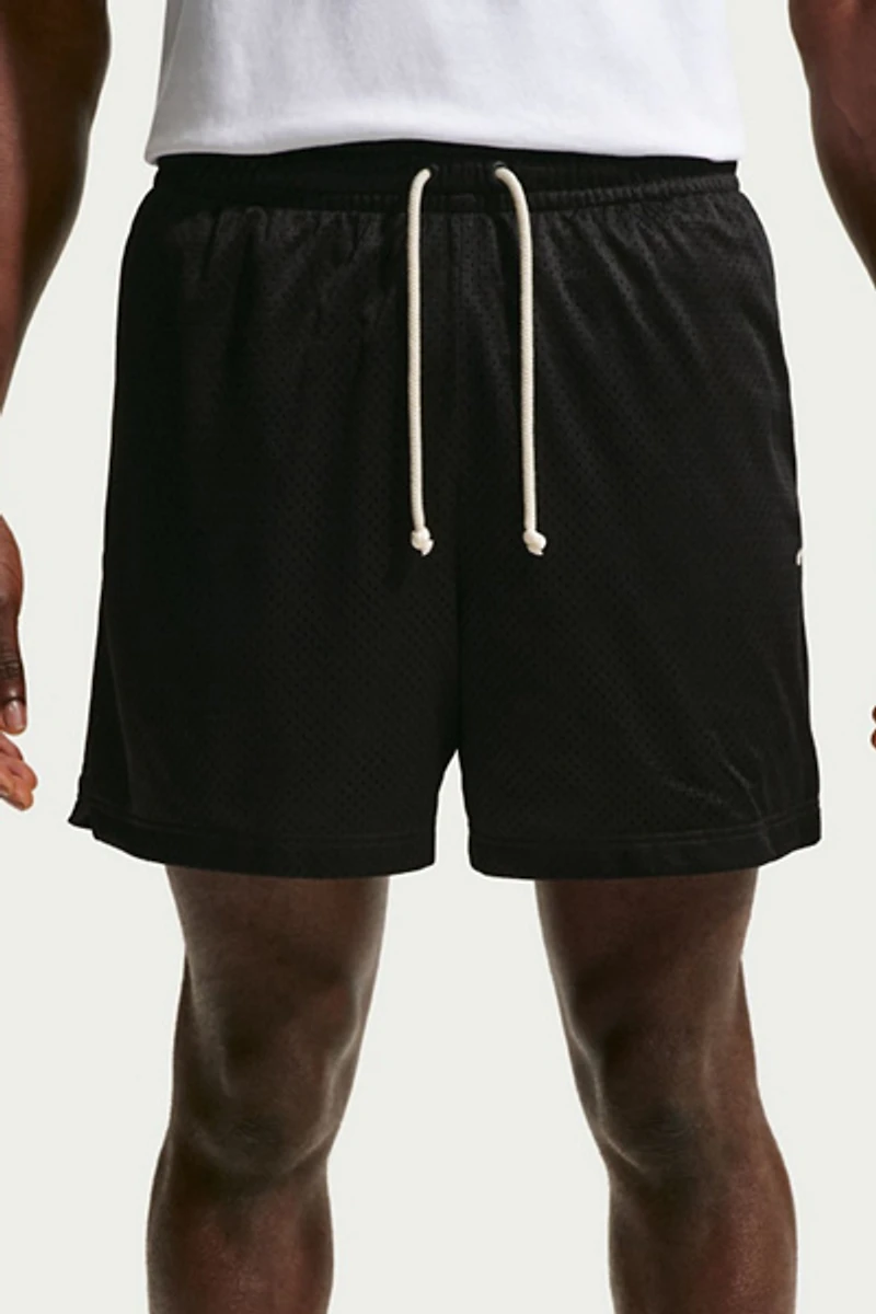 Athletic look mesh shorts by Nike in a Dri-FIT fabrication. Breathable mesh shorts with an adjustable drawstring tie waist. Includes front hand pockets. Cut to hit above the knee with a classic 5" inseam.