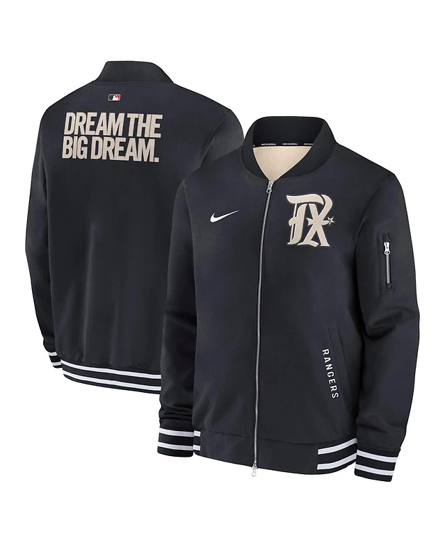 Nike Men's Black Texas Rangers Authentic Collection City Connect Full-Zip Bomber Jacket