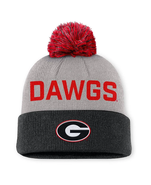 Nike Men's Gray/Black Georgia Bulldogs Primetime Peak Cuffed Knit with Pom Hat