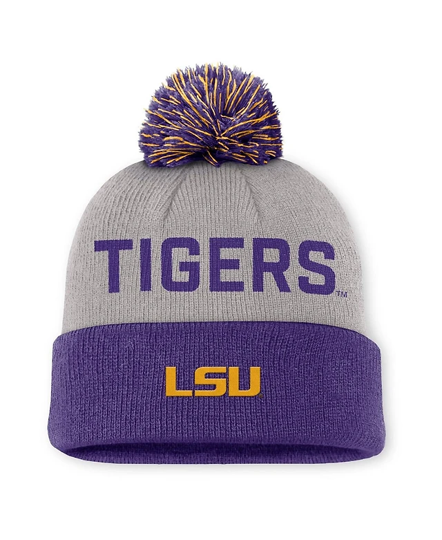 Nike Men's Gray/Purple Lsu Tigers Primetime Peak Cuffed Knit with Pom Hat