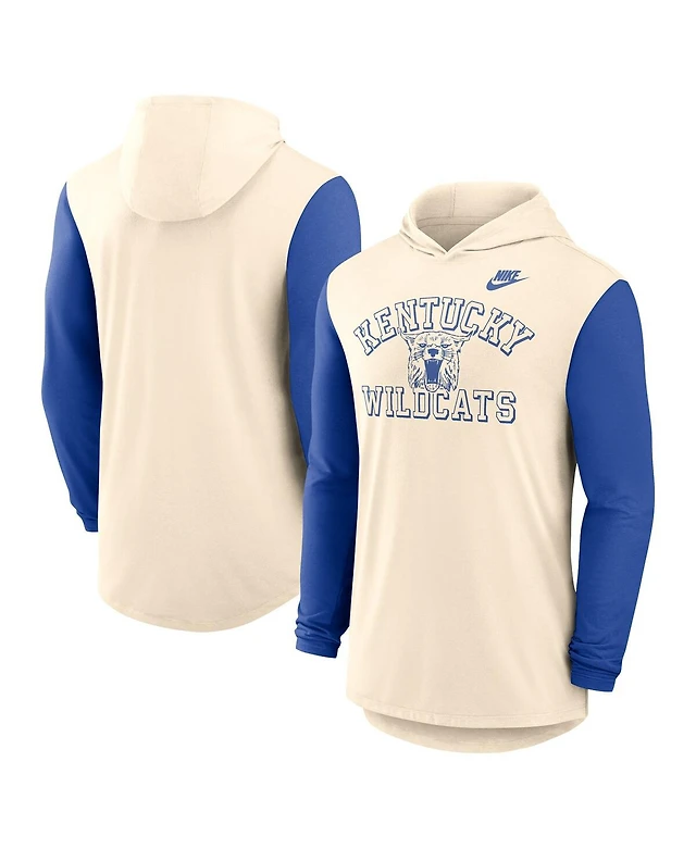 Nike Men's Natural/Royal Kentucky Wildcats Legacy Color-Block Tri-Blend Performance Long Sleeve Hoodie T-Shirt