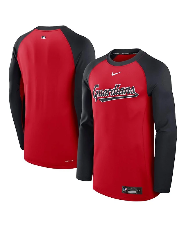 Nike Men's Red/Navy Cleveland Guardians Authentic Collection Game Time Raglan Performance Long Sleeve T-Shirt