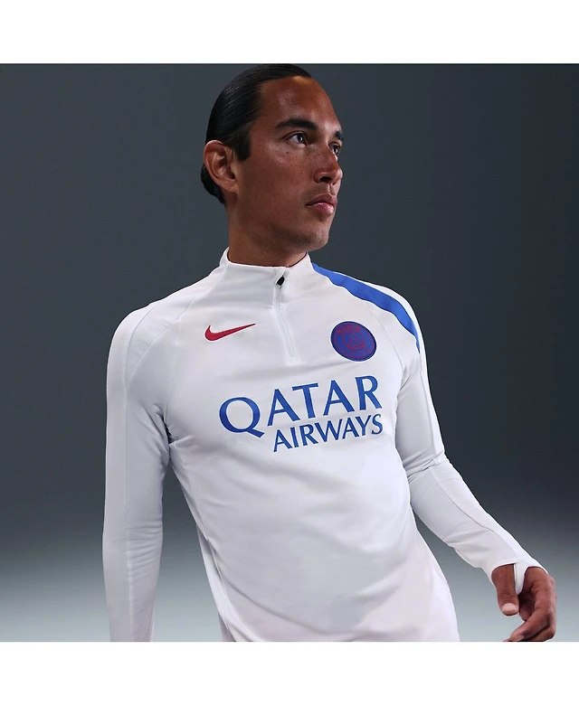 Nike Men's White Paris Saint-Germain 2025/26 Strike Drill Quarter-Zip Long Sleeve Dri-fit Jersey