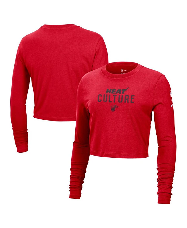 Nike Women's Red Miami Heat 2024/25 City Edition Essential Logo Slim Fit Long Sleeve Cropped T-Shirt
