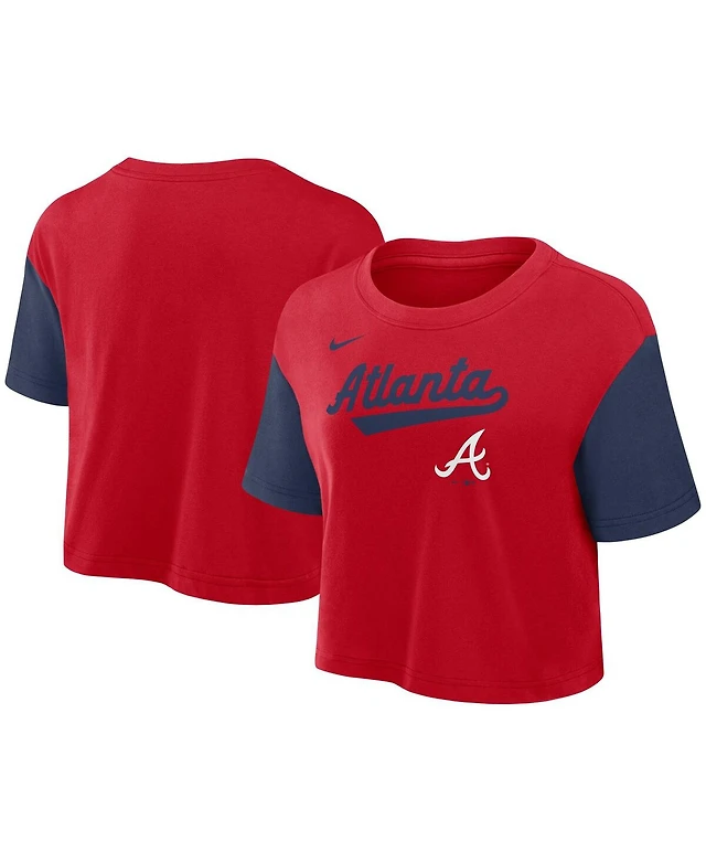 Nike Women's Red/Navy Atlanta Braves Script Cropped Performance T-Shirt