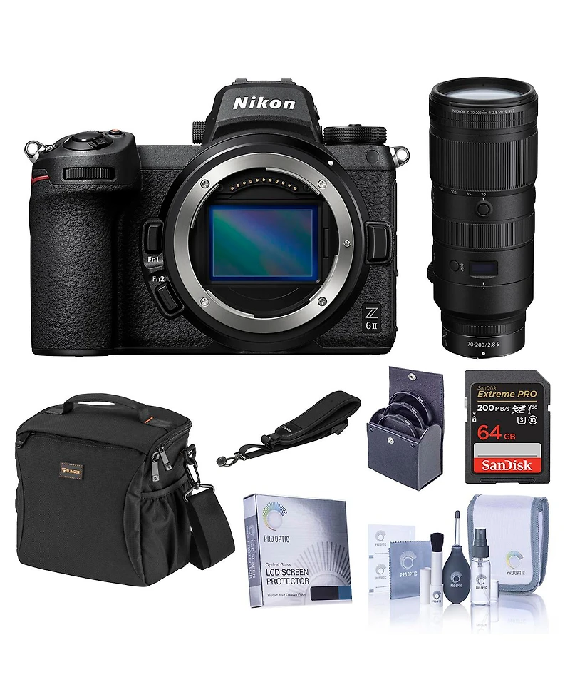 Nikon Z 6II Mirrorless Digital Camera with Nikkor Z 70-200mm f/2.8 Vr S Lens, Bundle with 64GB Uhs-i Memory Card, Shoulder Bag, 77mm Filter Kit, Scree in Bloomington, MN