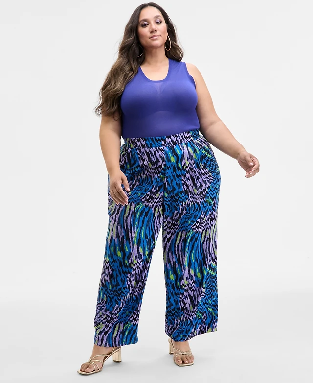 I.n.c. International Concepts Plus Printed Wide-Leg Pull-On Pants, Macy's Exclusive