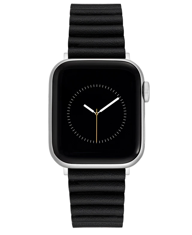 Anne Klein Women's Black Genuine Leather Band designed for Apple Watch 42mm (Series 1-3 only) & 44/45/46/49mm (Ultra & Ultra 2)