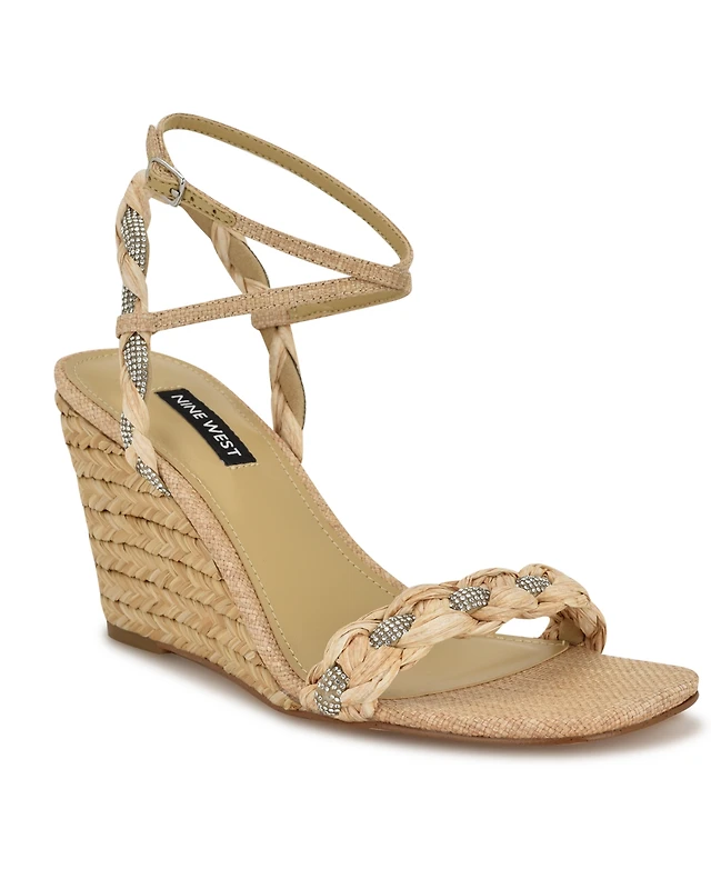 Nine West Women's Nashy Woven Embellished Wedge Sandals
