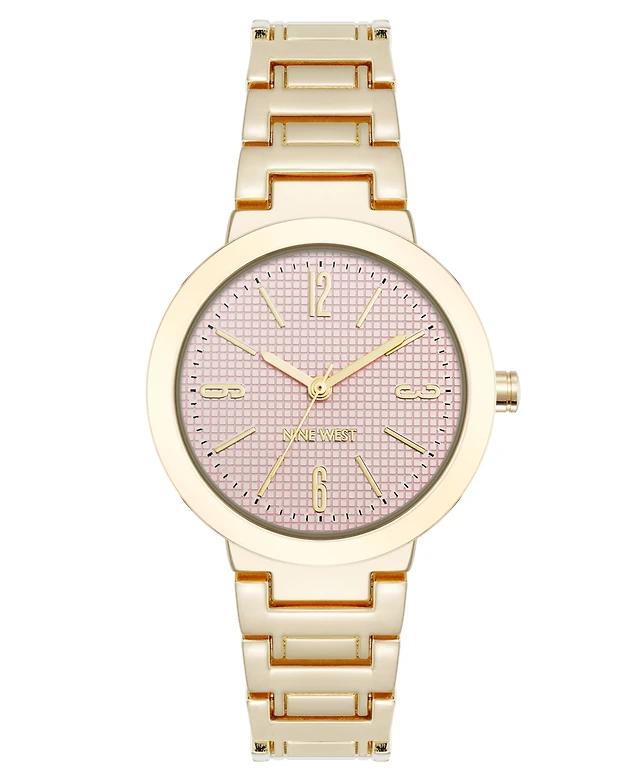 Nine West Women's Quartz Everyday Round Pink and Gold-Tone Metal Alloy Watch, 33mm
